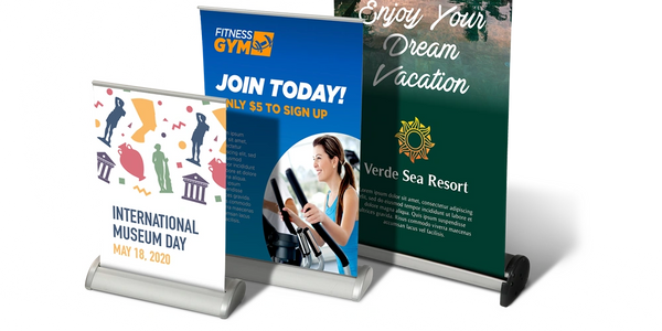 At displays or events, tents, tablecloths, fan cutouts, tabletop setups, fabric tube and SEG frame displays, roll-up and x-style banner stands, step and repeat signs, table runners, plus PVC or foam core counter cards create a cohesive, professional presence that sets your brand apart.
